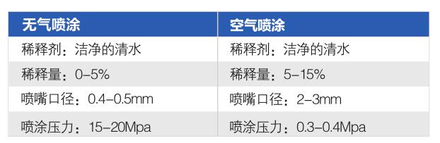 ■涂裝方法 The coating method配比(重量比)甲組份:乙組份=7:3,將甲組份按比例緩慢加入乙組份中,邊加邊攪拌,均勻后即可涂裝。采用空氣噴涂方式施工。